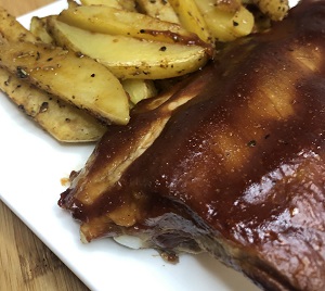 Receta de costillas al horno con salsa barbacoa tuneada y patatas gajo con especias. Y además te enseñare como hacer una carne desmechada deliciosa si te acaban sobrando costillas.